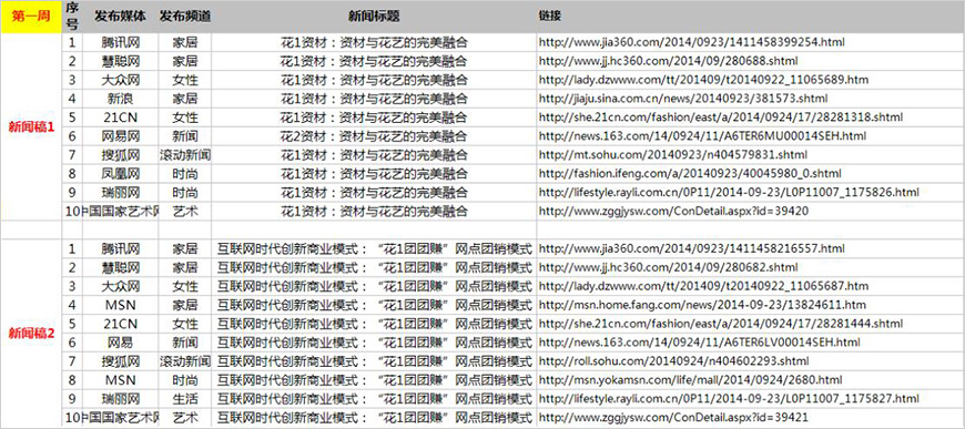 1)花1资材EPR网络口碑营销的渠道,更为全面的综合了:论坛、百科、文库、新闻媒体、问答;