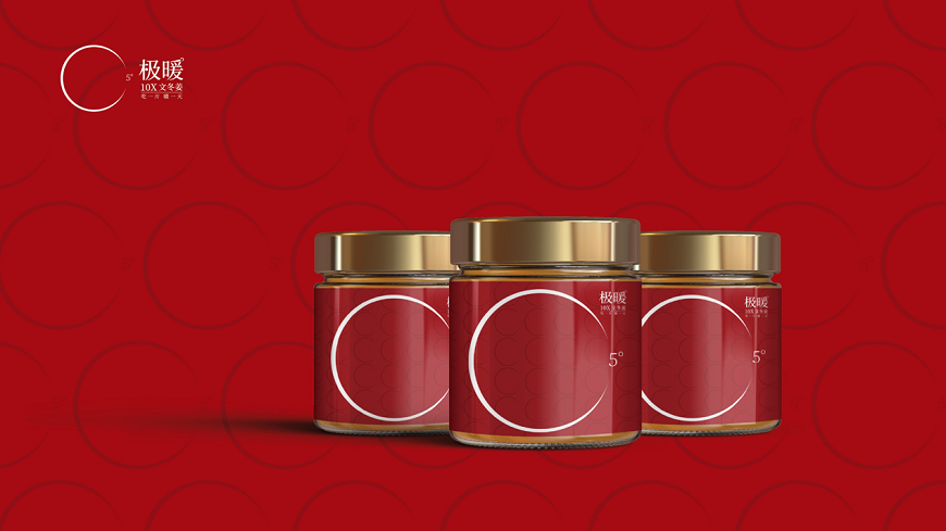 整个瓶子沿用色彩战略“大面积的卡地亚红”。瓶身正面,我们将赤道5°的符号放在瓶身上,引发消费者好奇;瓶身背面,我们将大大的暖字展现给消费者,核心利益赤裸裸的告诉消费者,就仿佛瓶子会说话,我们的产品能让你很暖,快来买吧。